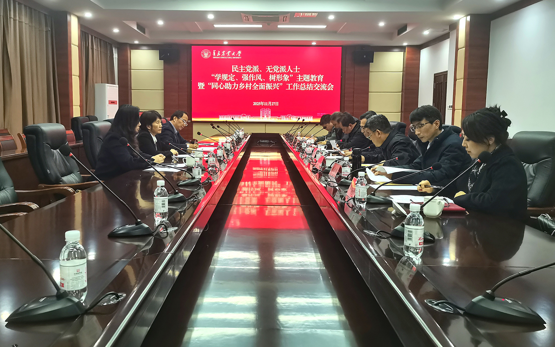 为系统回顾学校“学规定、强作风、树形象”主题教育与统战成员助力乡村振兴工作的成果与经验,进一步推动统战工作再上新台阶,11月27日,学校召开民主党派、无党派人士“学规定、强作风、树形象”主题教育暨“同心助力乡村振兴”工作总结交流座谈会。校党委副书记刘春霞出席会议并讲话,党委委员、统战部部长赵龙刚主持会议。学校各民主党派基层组织负责人、无党派人士代表参加会议。